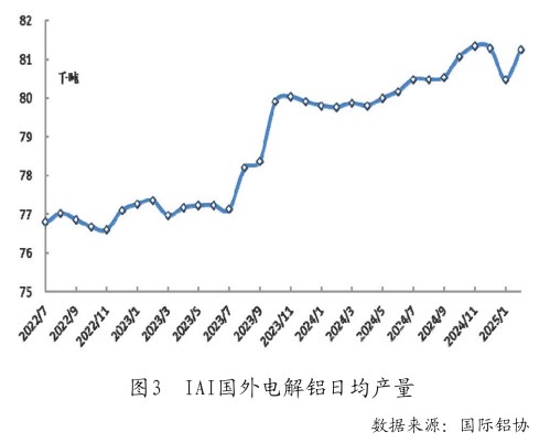 2025年2月海外電解鋁產(chǎn)量為227.5萬(wàn)噸,同比下降1.6%;日均產(chǎn)量8.1萬(wàn)噸,環(huán)比增加0.9%。盡管近幾年海外在建產(chǎn)能規(guī)模較大,但實(shí)際建設(shè)和投產(chǎn)進(jìn)度相對(duì)緩慢,其中華青鋁業(yè)二期25萬(wàn)噸/年于2024年建成投產(chǎn),去年11月份曾因成本問(wèn)題暫停投產(chǎn),但隨著鋁價(jià)上漲和氧化鋁價(jià)格的下跌,已于2025年一季度全部投產(chǎn),實(shí)現(xiàn)了約50萬(wàn)噸/年滿負(fù)荷運(yùn)行。預(yù)計(jì)2025年三季度會(huì)有其它新項(xiàng)目陸續(xù)釋放。歐美等地區(qū)停產(chǎn)產(chǎn)能的恢復(fù)進(jìn)度也不及預(yù)期,使得海外供應(yīng)能力提升速度整體受到限制。其中德國(guó)Trimet旗下EssenHamburgVoerde三家電解鋁廠復(fù)產(chǎn)工作正在進(jìn)行中。