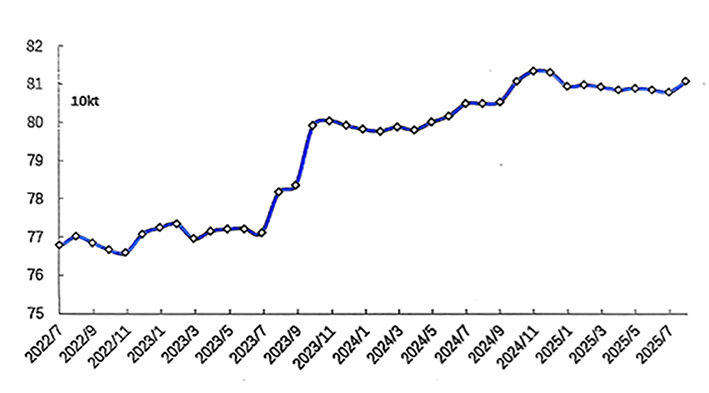 經(jīng)調(diào)整,8月份產(chǎn)量為376.4萬噸;預(yù)計9月份產(chǎn)量為364.4萬噸,同比增長1.1%,日均產(chǎn)量環(huán)比增加0.04%。